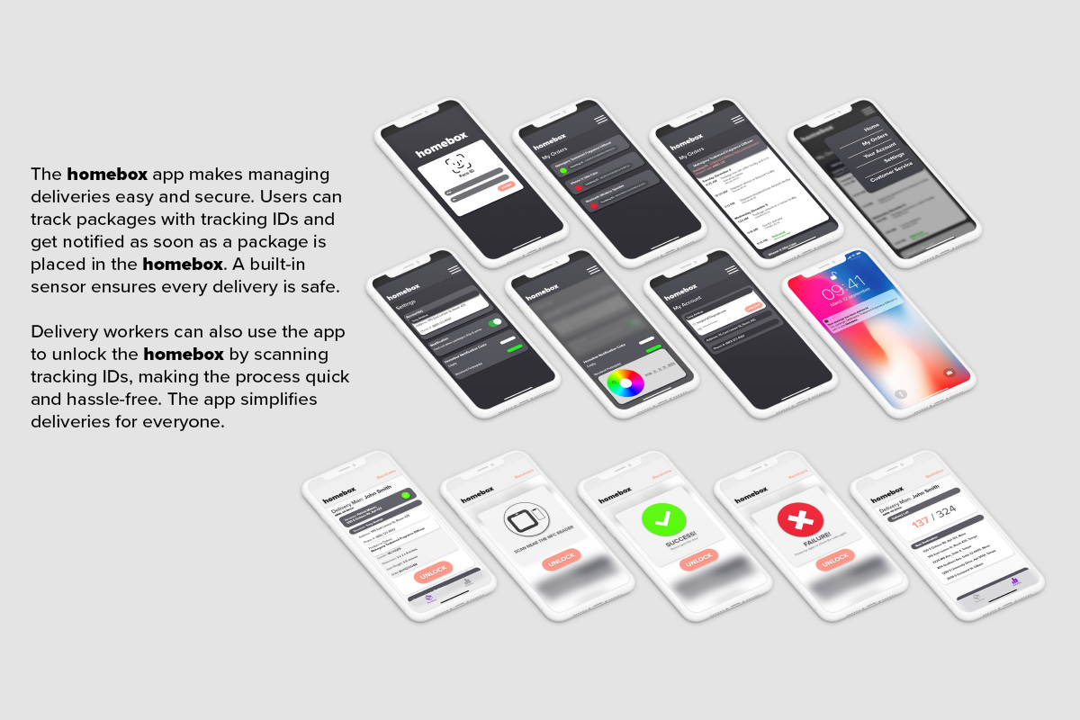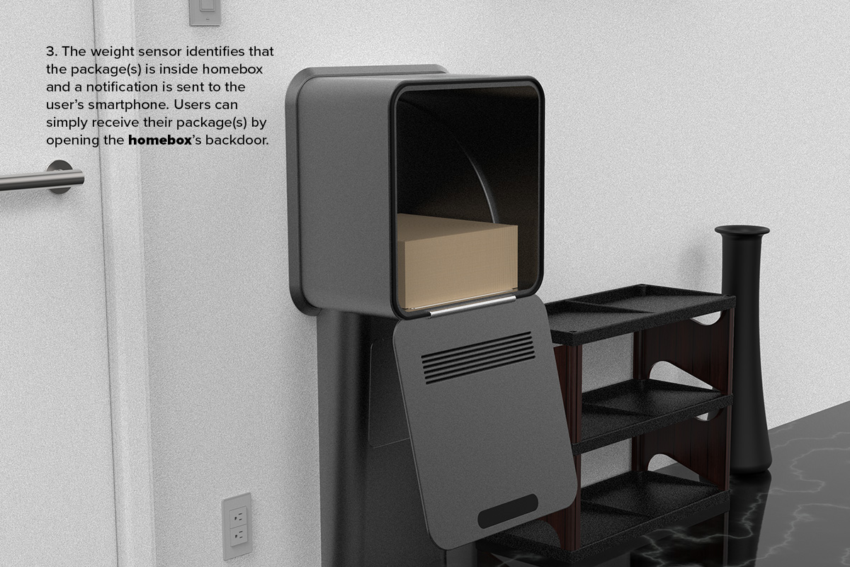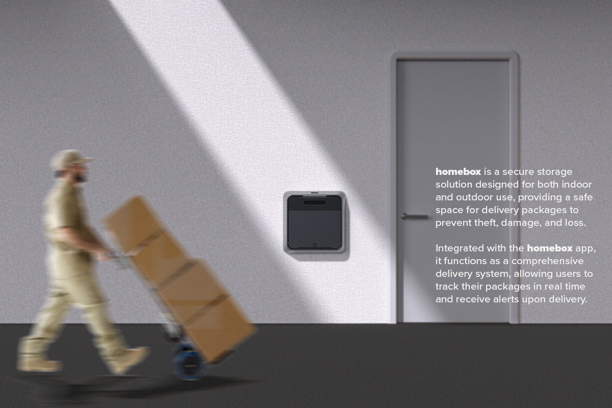 HomeBox reimagines the way we handle package deliveries, offering an innovative and secure storage solution tailored for today’s e-commerce-driven world. Designed for both indoor and outdoor use, HomeBox ensures that packages remain safe from theft, damage, and loss. Its durable, thoughtfully crafted design seamlessly integrates into any home environment, providing users with peace of mind and convenience. What sets HomeBox apart is its advanced functionality powered by the HomeBox app. This intuitive app transforms the storage box into a fully integrated delivery management system. Users can easily track their packages in real time with tracking IDs provided by delivery services, keeping them informed throughout every step of the process. Upon delivery, a built-in weight sensor detects when a package is placed inside the box and instantly sends a notification to the user’s device. This ensures that users are always updated, even when they are not at home. HomeBox is the perfect combination of cutting-edge technology and practical design, meeting the needs of both recipients and delivery personnel. By addressing the challenges of modern package delivery, HomeBox not only enhances security but also simplifies the entire experience. It’s more than just a storage solution—it’s a game-changer for the way we manage deliveries.
