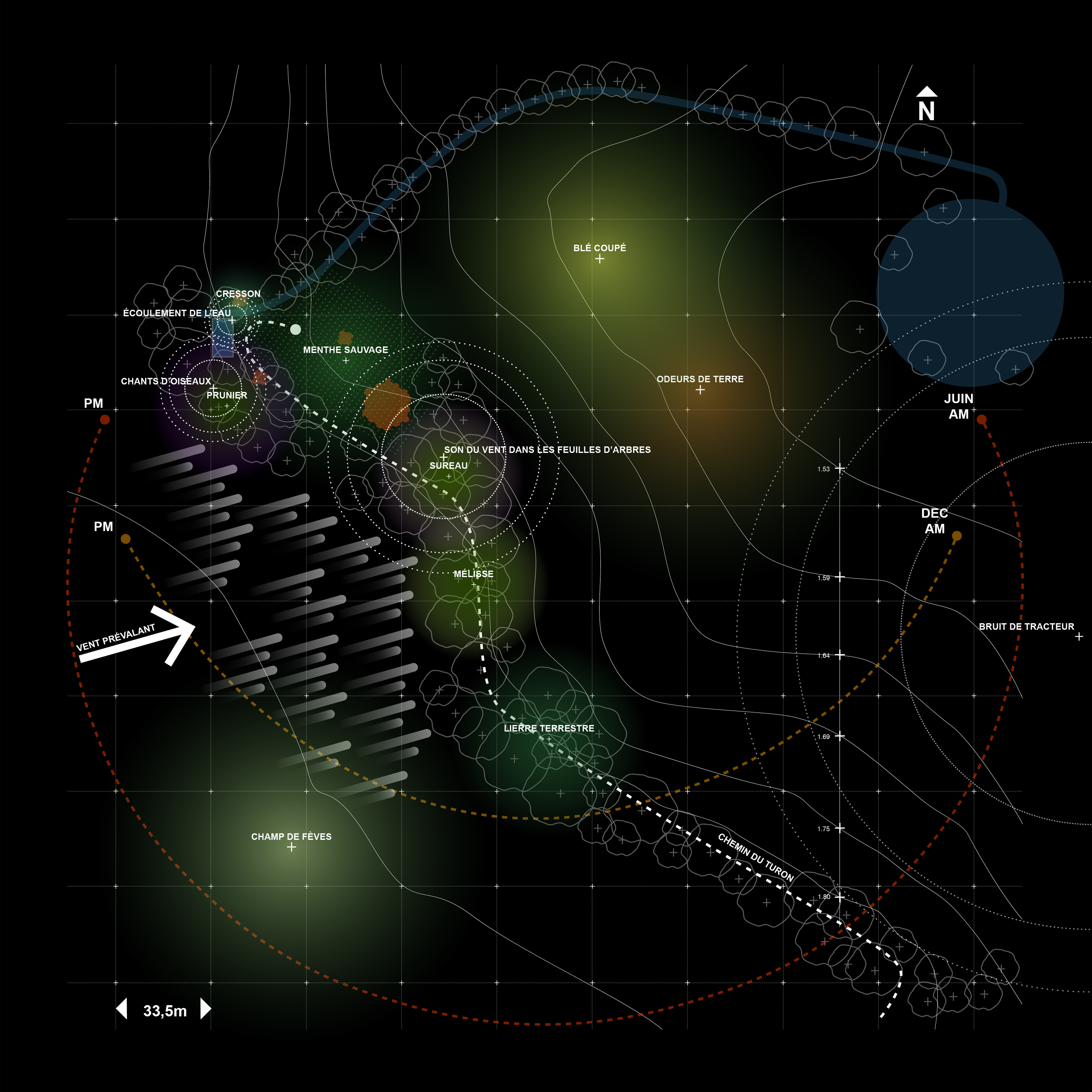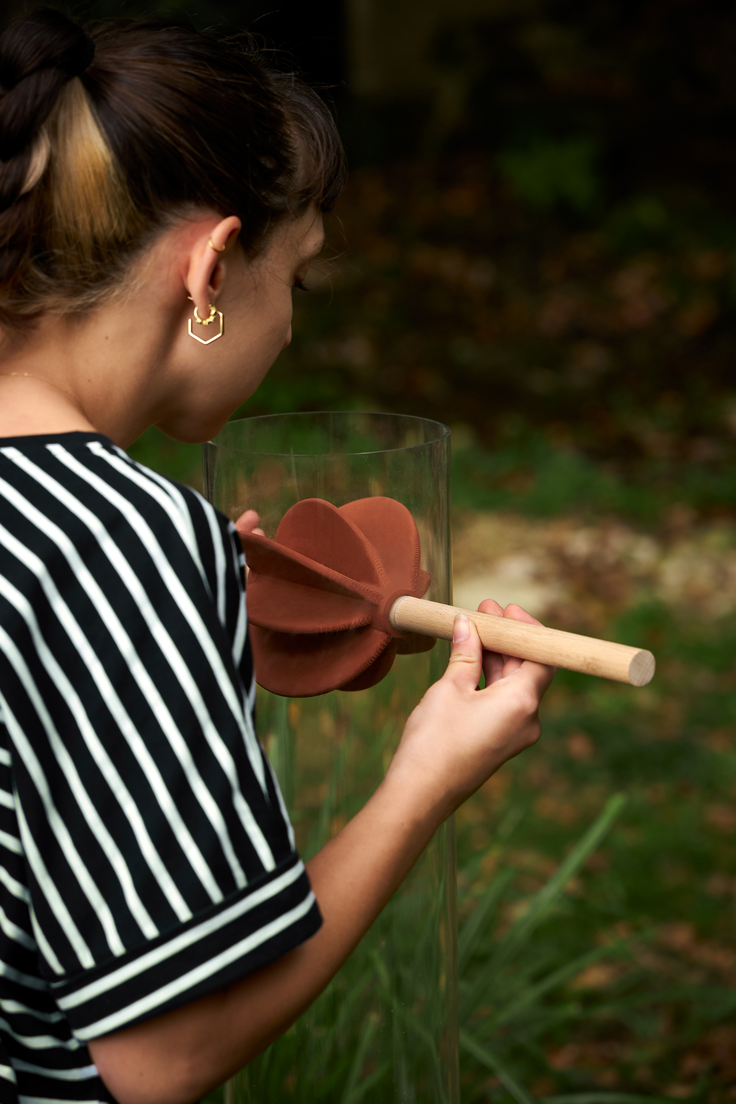 Petites Inventions du Paysage is a collection of sensory installations designed by Studio Baudequinmaldes and situated along a forest path in Berrac, in the south of France. Conceived as both artistic interventions and design research, these small-scale architectures and devices invite visitors to slow down, to listen, to smell, and to feel the landscape differently. Each installation reveals a distinct dimension of perception. The Moulin à Odeurs captures the wind and diffuses the fragrance of local plants; the Cabane Sensorielle transforms rainfall and light into contemplative experiences; the Fontaine Végétale create a hanging garden of wild plants to smell; the Phare à Horizons frames fragments of sky and shifting light. A fragrance, Le Parfum du Chemin, extends the project beyond the site, allowing distant peoples to sense the place. Developed through field observation, botanical exploration, and collaboration with local craftsmen, the project uses materials, wood, ceramic, stone, and metal, chosen for their tactile, olfactory, and acoustic qualities, as well as for their ability to change with time. The installations adapt to natural rhythms: humidity, light, and seasons become integral to the work. Petites Inventions du Paysage proposes a vision of design that extends beyond the object, toward a design of atmosphere, relation, and attention. It explores how design can act as a mediator between humans and the environment, amplifying what already exists rather than imposing form. Ultimately, the project reimagines design as an act of care and listening, a sensitive, site-specific practice rooted in slowness and perception. By celebrating natural phenomena such as rain, light, and scent, it transforms the landscape into a living story, inviting us to experience the world through a renewed sense of wonder and connection.
